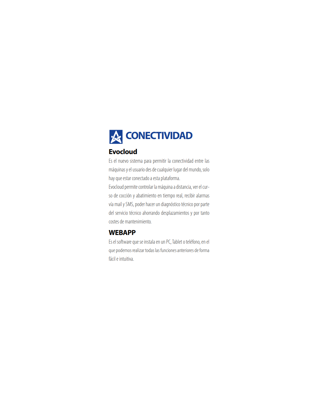 - Supervisión remota del proceso con plataforma Evocloud (según configuración).