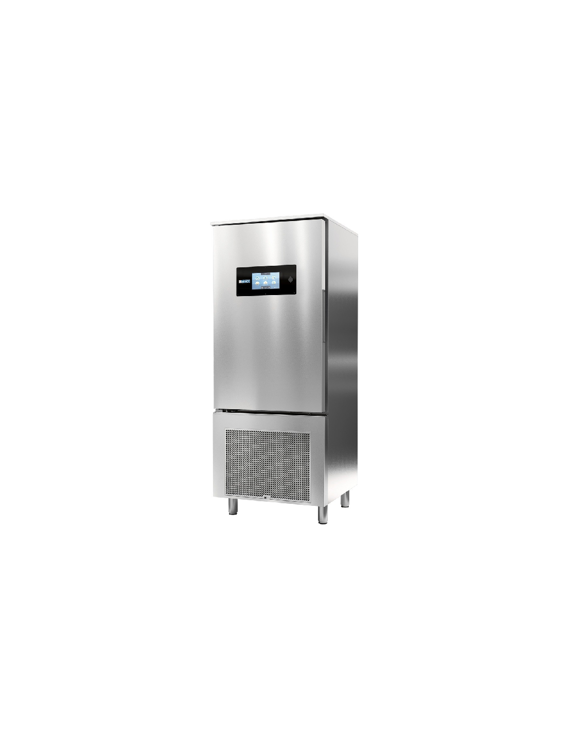 Abatidor multifunción profesional para 15 bandejas GN 1/1 o 60x40 cm, con rendimiento de 70 kg/ciclo en abatimiento (+90 °C a +3 °C en 90 min) y 30 kg/ciclo en congelación (+90 °C a -18 °C en 240 min). Incorpora panel táctil de 9", sonda multipunto (4 zonas), gestión HACCP y conectividad remota. Medidas: 790 x 839 x 1990 mm.