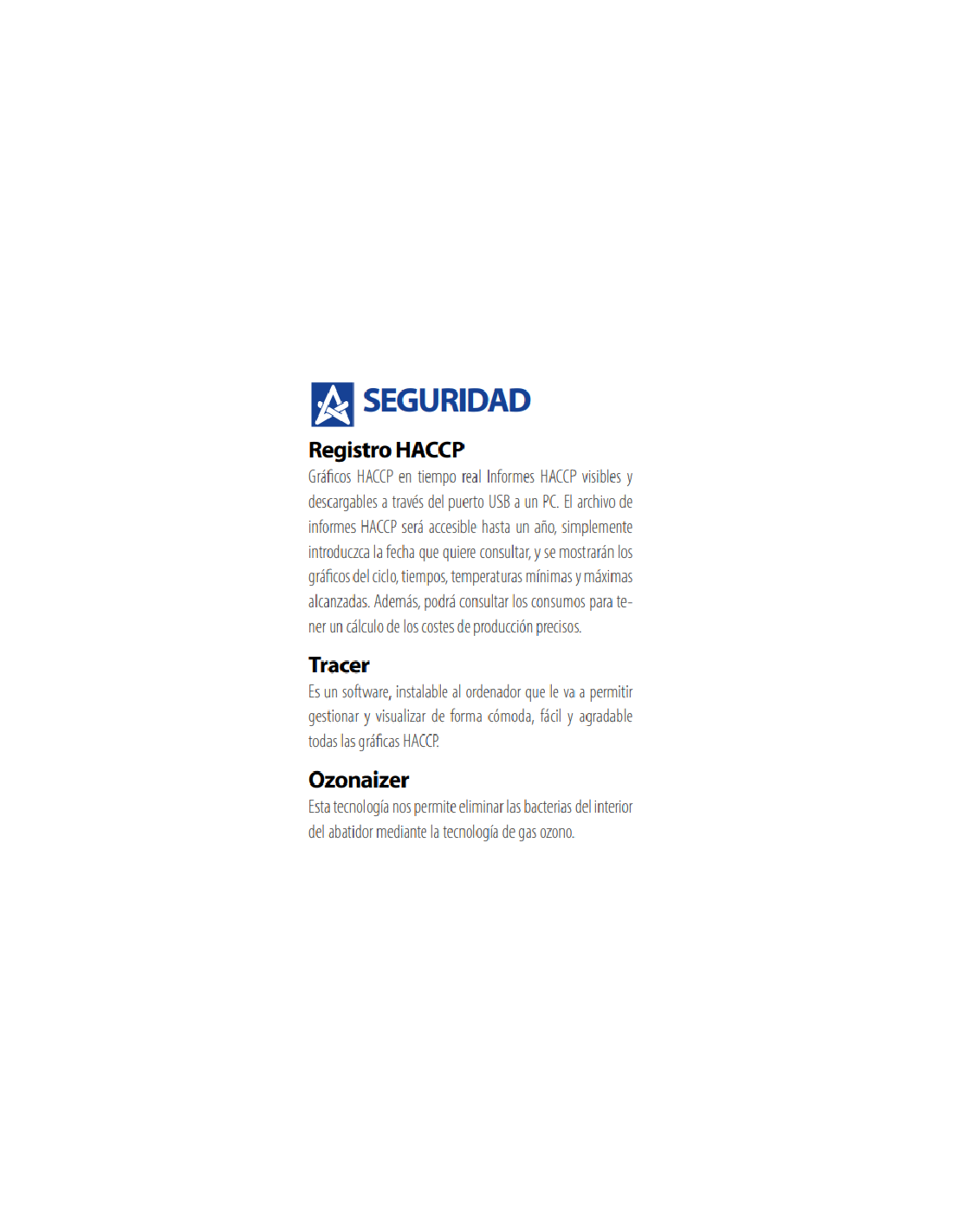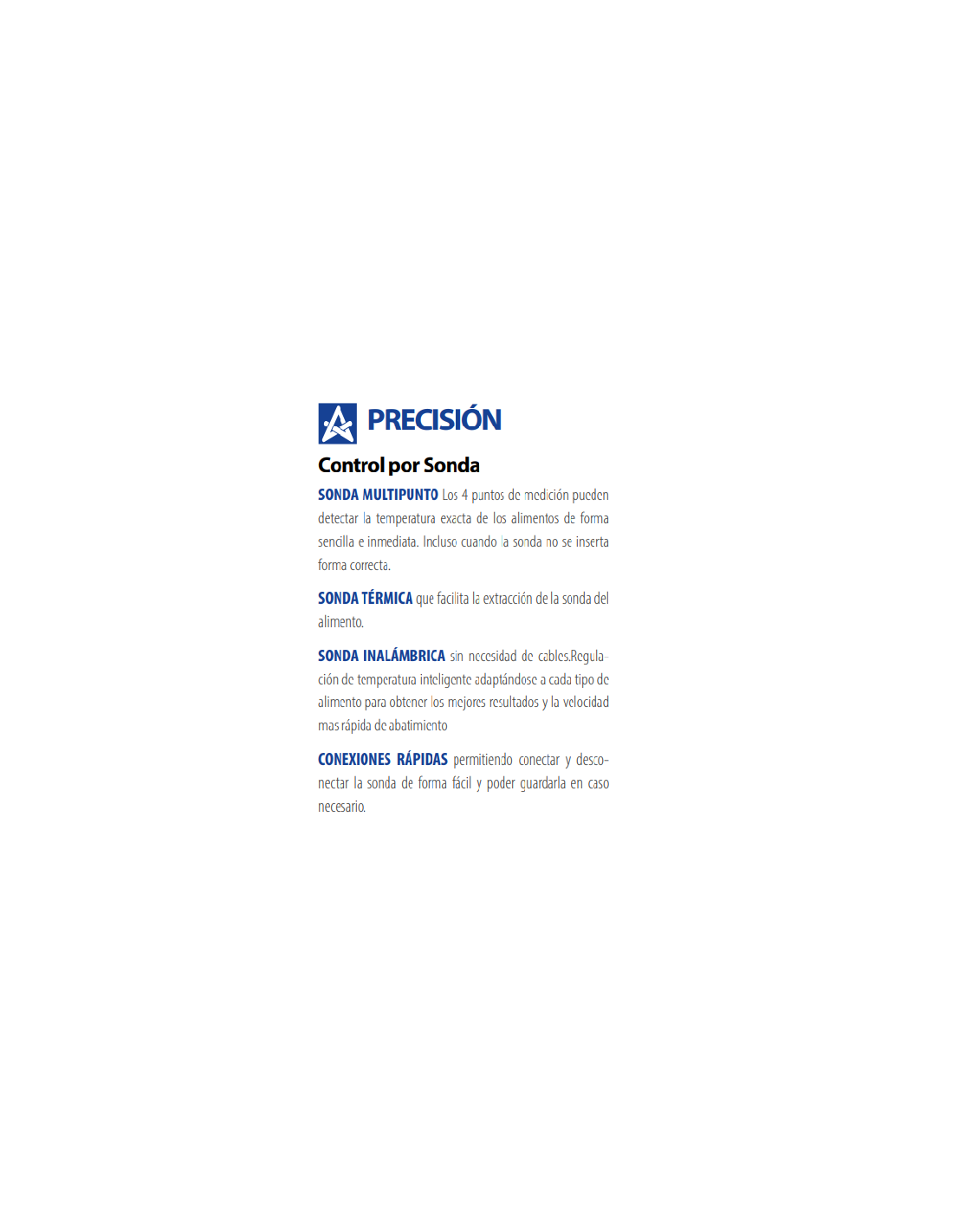 - Ciclos completos: abatimiento, congelación, descongelación, conservación, fermentación y cocción a baja temperatura.