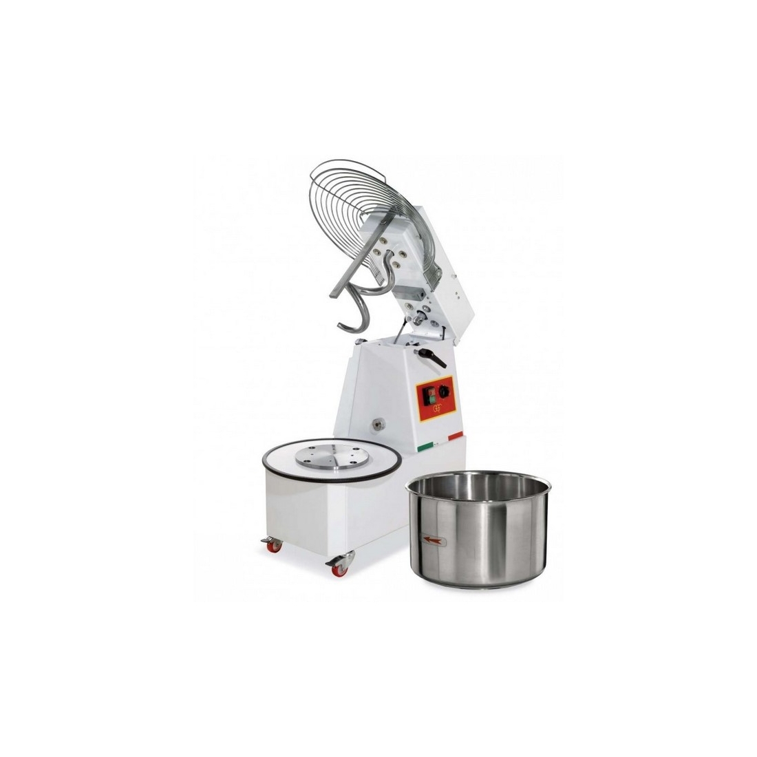 Amasadora profesional de Fabricación Italiana con capacidad de 22 litros. Cuenta con una potencia de 750W. Modelo idóneo para hacer masas consistentes. Modelo con cuba y cabezal extraible. Es posible adquirir en una velocidad o en dos velocidades. El modelo de una velocidad es monofásico (230V) y el modelo de dos velocidades es trifásico (400V). Seleccionar antes de añadir al carrito.