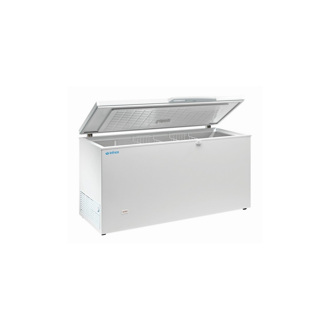 Congelador Tapa Abatible 100cm HF320ALHC de Infrico, con una capacidad de 220 litros y capacidad para dos cestas de organización. Cuenta con luz interior y termostato regulable con posibilidad de congelación rápida.