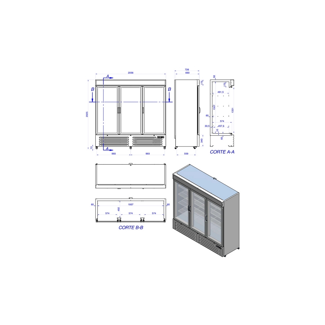 - Cada refrigerador incluye cuatro estantes por puerta, diseñados para una exhibición clara y ordenada de los productos.