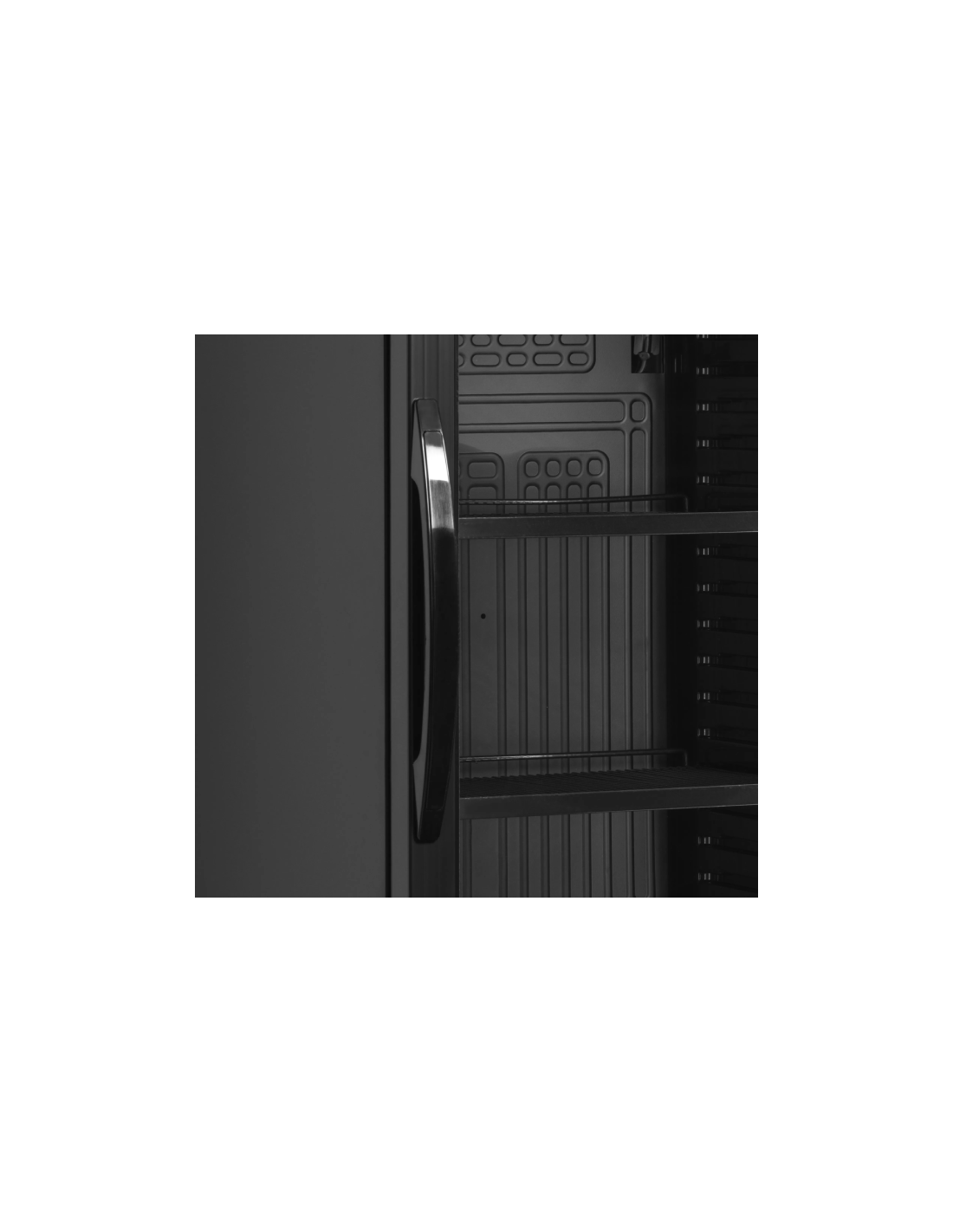 Armario Expositor Refrigerado color negro de Tefcold, expositor profesional con diseño elegante totalmente en negro, pensado para la conservación y exhibición de bebidas y productos refrigerados en comercios y hostelería.