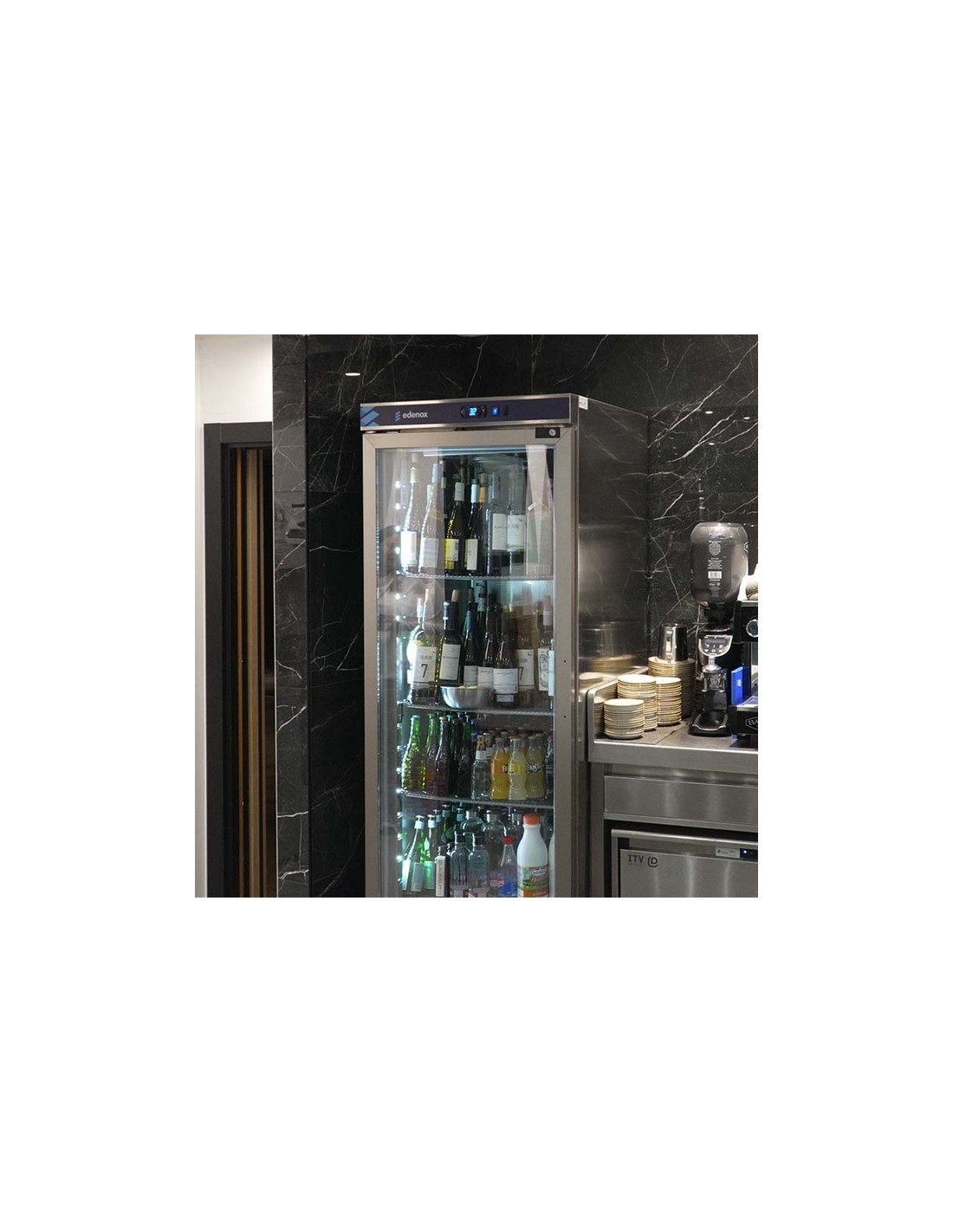 Armario Frigorífico de Servicio APS-1402 HC PC de Edenox, cuenta con unas dimensiones externas de 693 x 726 x 2067 mm, una capacidad de 600 litros y 1 puerta de cristal. Está equipado con una puertas pivotante, tiene una clasificación energética C y un rango de temperatura ajustable entre -2 y +8ºC. Con una potencia de 250W, su consumo anual es de 1474 Kw.