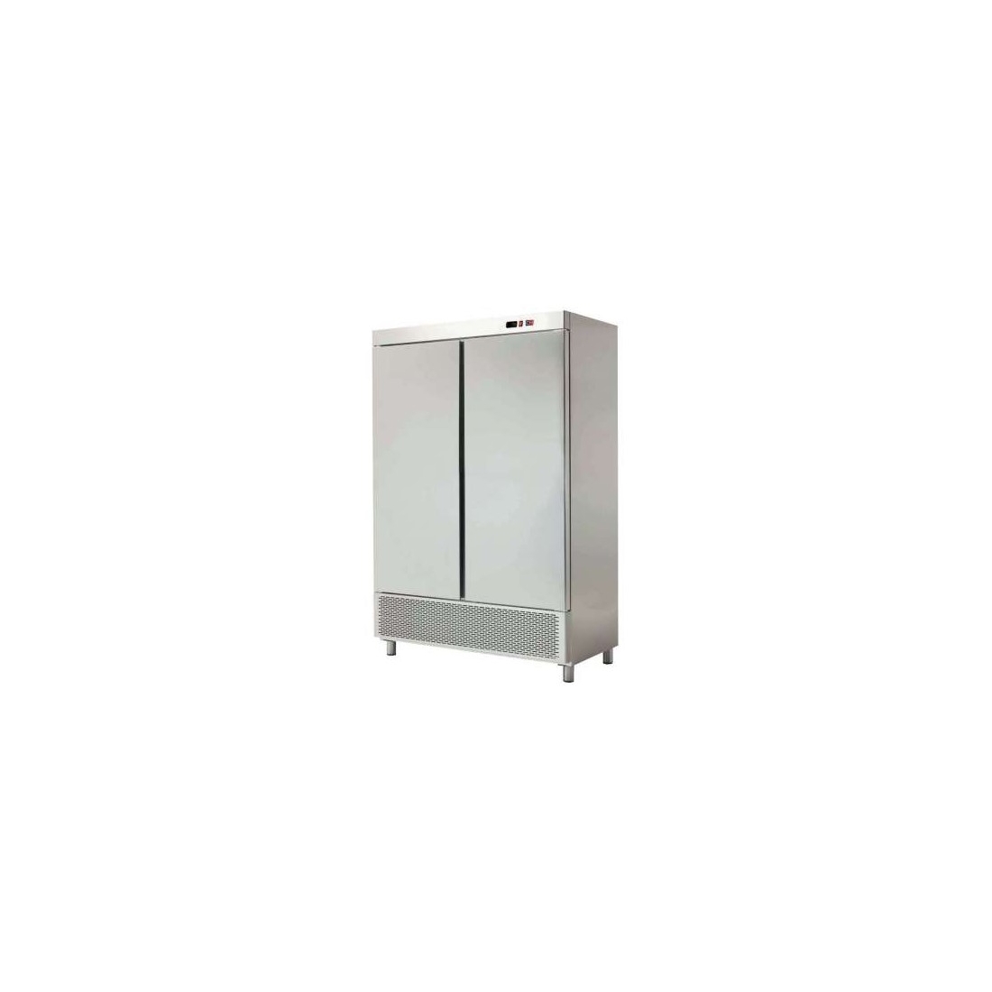 Armario refrigerado 2 puertas, con una capacidad de 1200 litros. Está equipado con desescarche automático, evaporador de tiro forzado y control electrónico de la temperatura. Construido en acero inoxidable de alta calidad AISI-304, interior y exterior del mueble, fabricado en España.