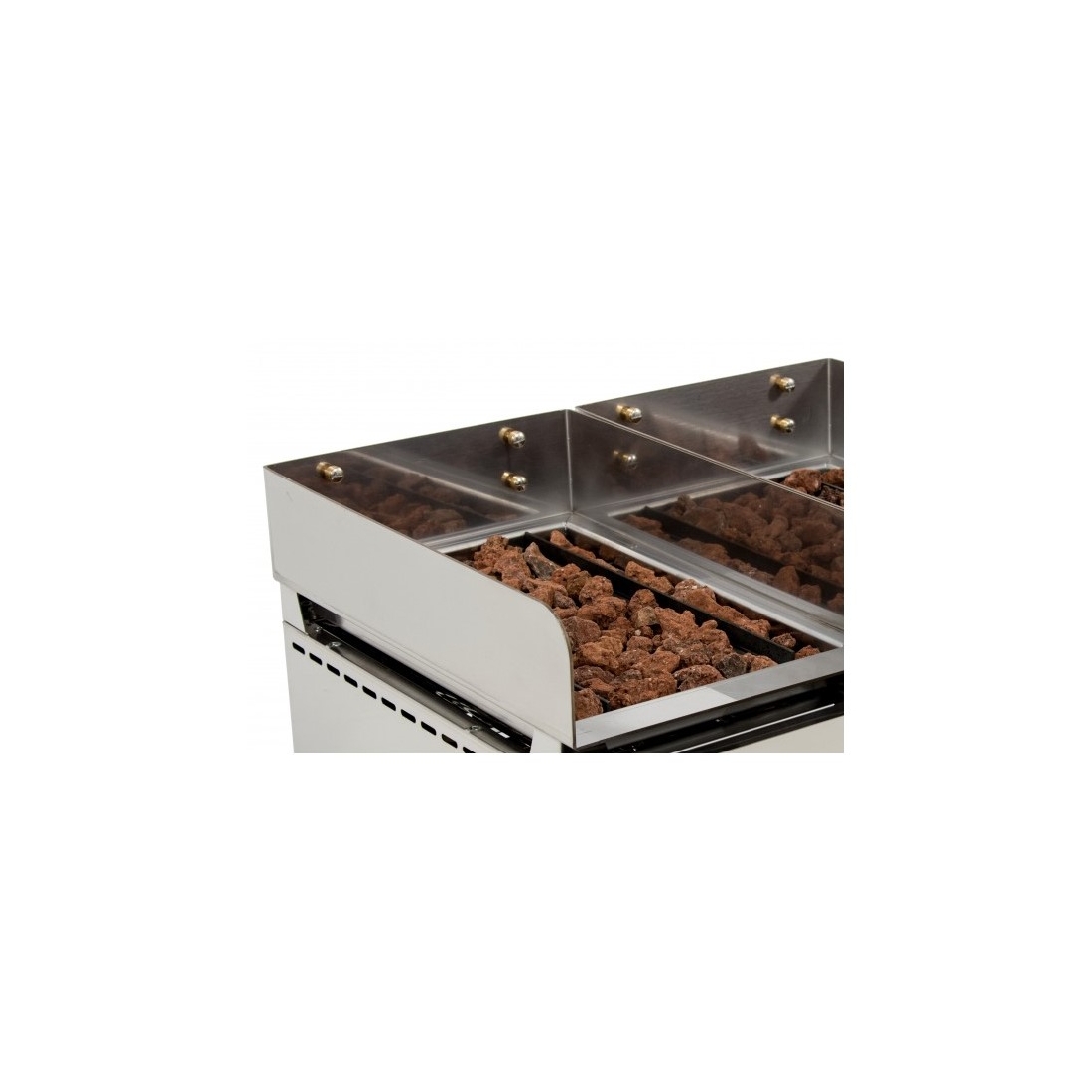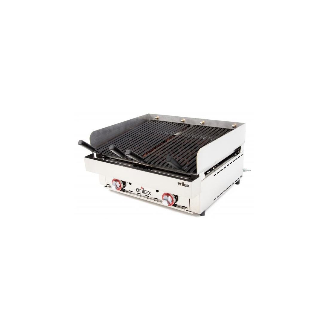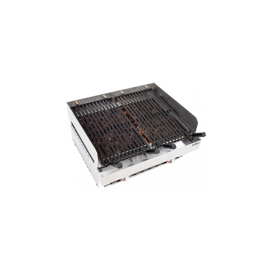 Parrilla vasca de piedras volcánicas a gas. Cuenta con 2 parrillas con una superficie útil de 280x500 mm. Está equipada con quemadores tubulares de gran poder calorífico. Tiene un peto de 100 mm que permite situar la parrilla en 3 alturas. Fabricada en España con materiales de alta calidad. Piedras volcánicas incluidas.
