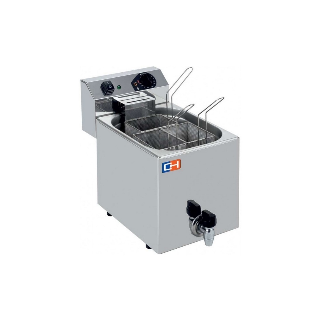Cocedor de pastas profesional, eléctrico con tres cestas. Con una cubeta GN 2/1, cuenta con una capacidad de 7 litros, e incluye grifo de drenaje.