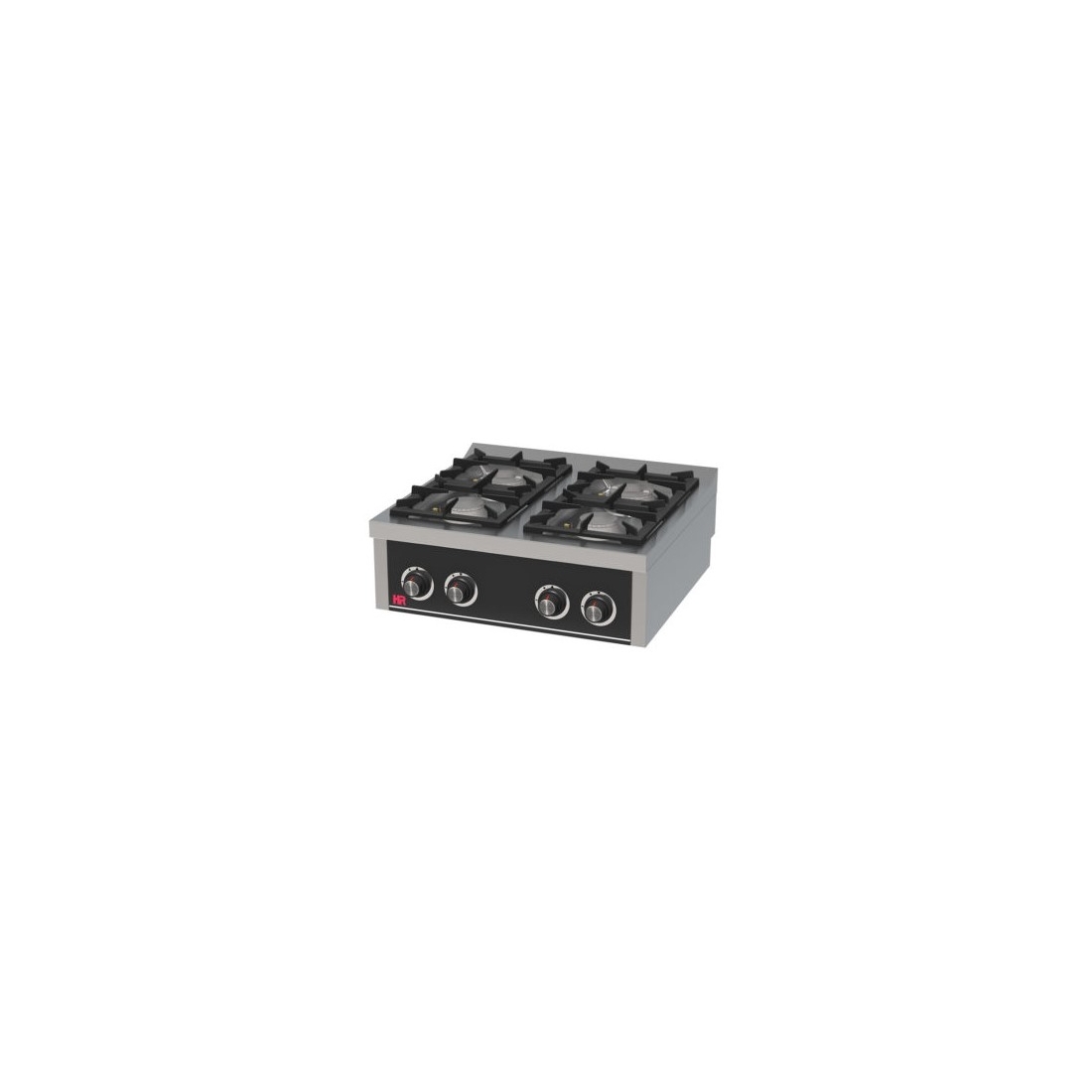 Cocina a gas de sobremesa con 4 Fuegos C4F750S de HR FAINCA, con fuegos superiores de gran rendimiento calorífico niquelado. Este fogón industrial de fondo 750 cuenta con cuatro quemadores 30,6Kw, parrillas de hierro fundido y termopar de seguridad. Fabricación Española.