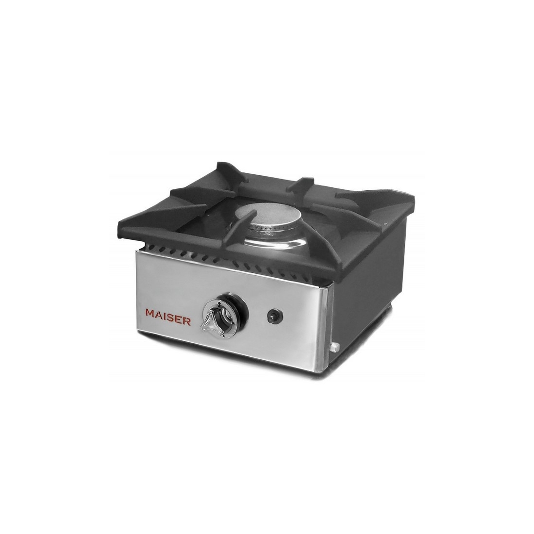 Cocina Profesional 1 Fuego CG1F de Maiser, fabricada en España con materiales de calidad y quemador de alto poder calorífico Italiano. Cuenta con 6Kw de potencia, parrillas de hierro fundido robustas, mandos metálicos de zinc y termopar de seguridad.