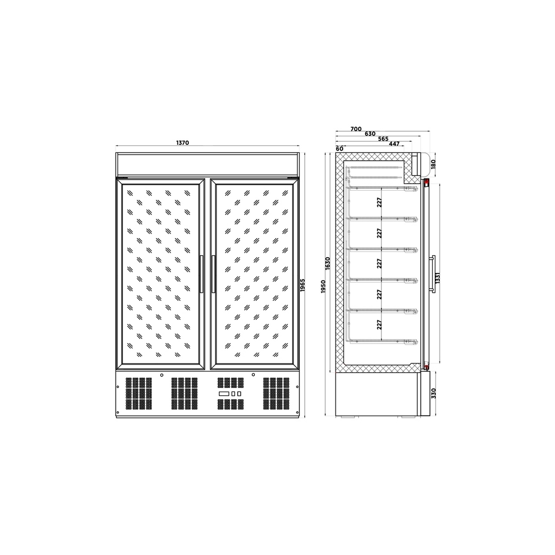 Congelador hostelería de 1078 litros con ajuste de temperatura de -18º a -22ºC. Cuenta con una potencia de 1100 W a 230 V. Además, incluye termostato digital, desescarches automáticos y evaporación automática. Medidas: 1370 x 720 x 2060 mm.