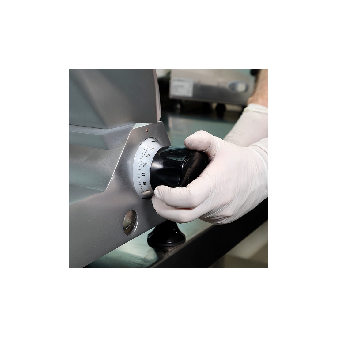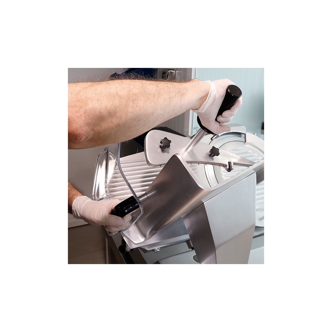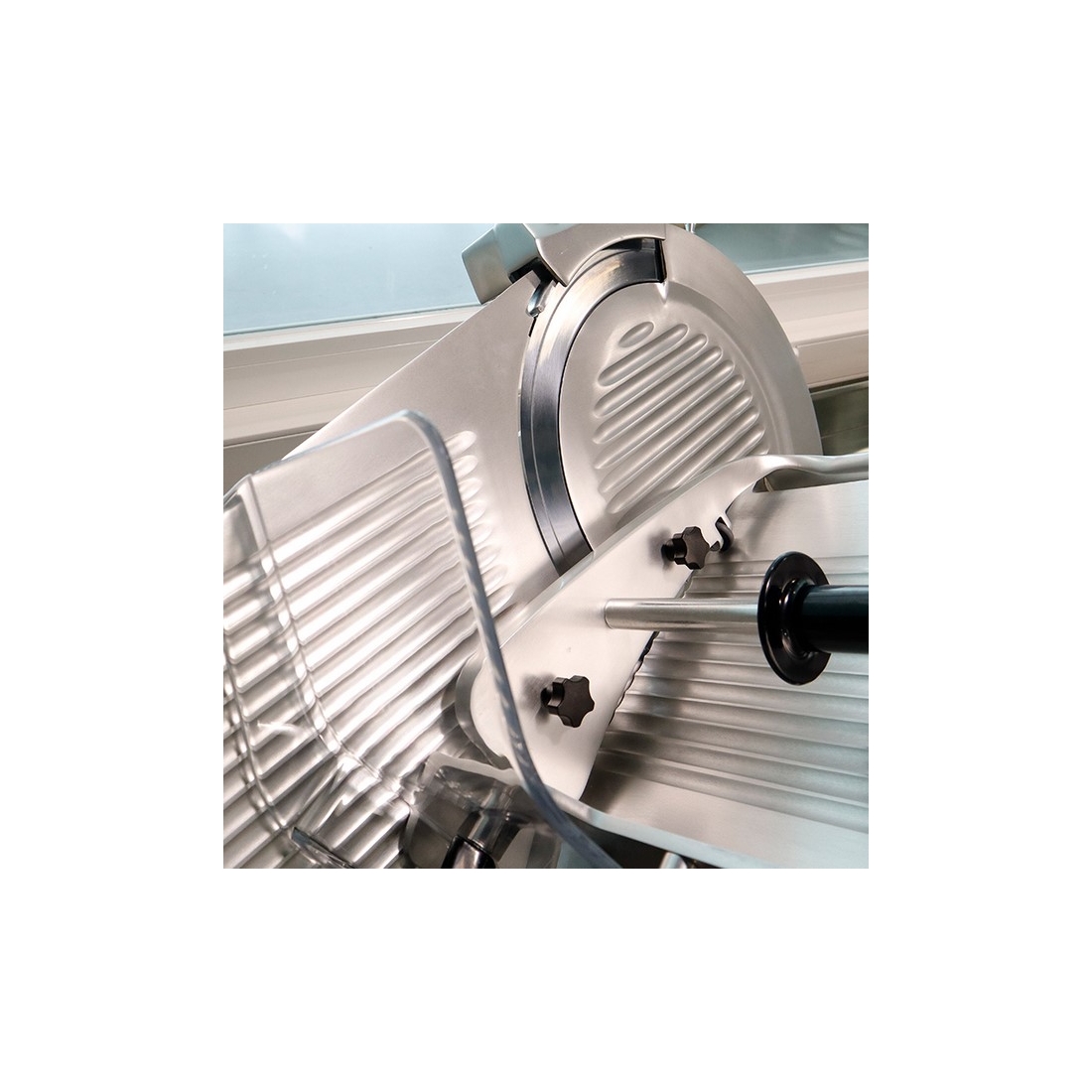 - Cortadora de fiambres por gravedad, fabricada con aleación de aluminio anodizado.