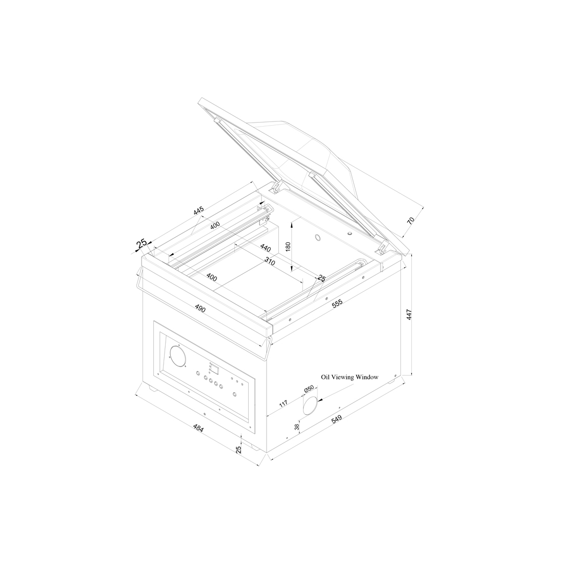 - Dimensiones de la cámara: 440 x 445 x 180mm