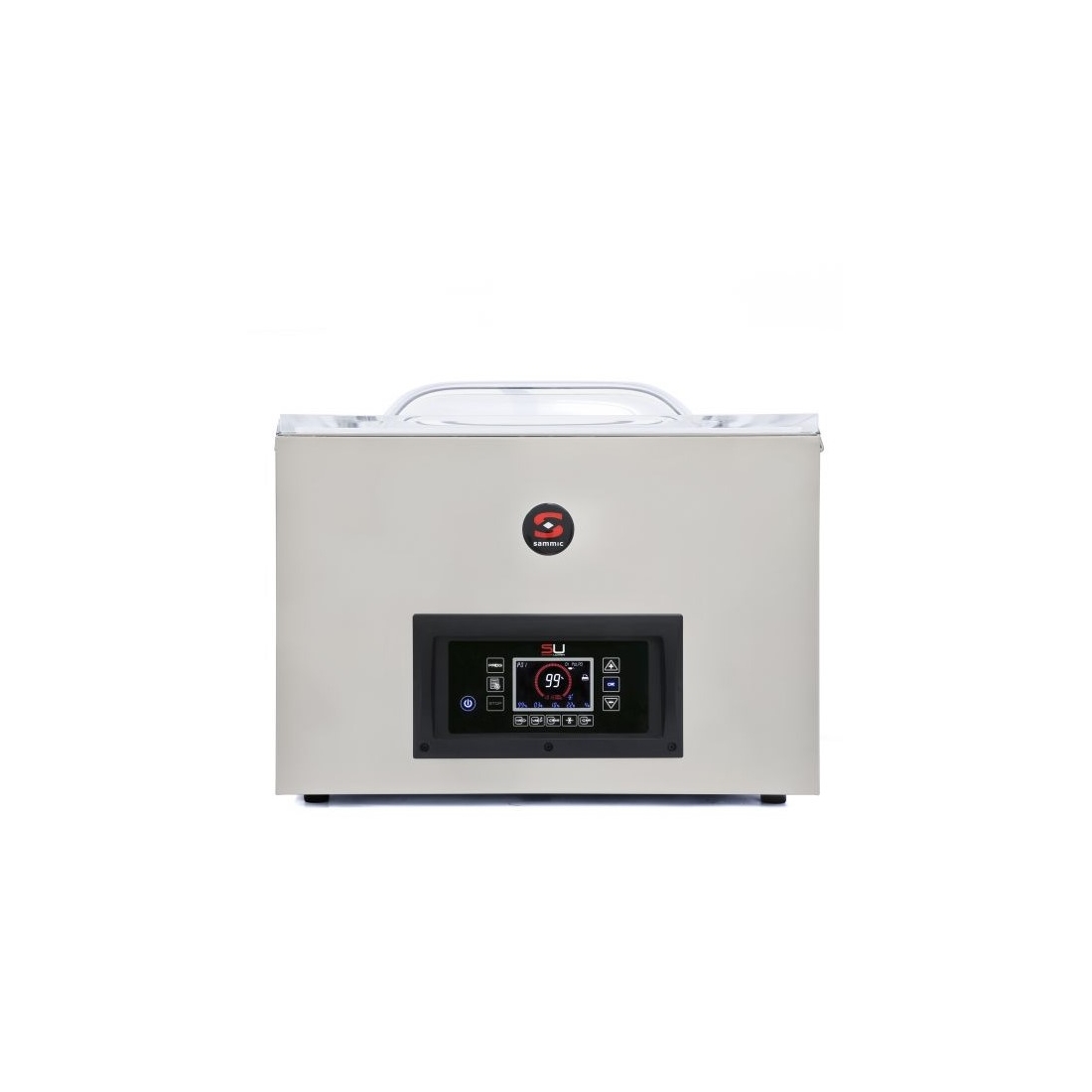 Envasadora al vacío de sobremesa, de la serie Sensor Utra de Sammic, controlada por sensor con doble barra de soldadura de 420 mm Con bomba de vacío de 20m3/h y panel de control digital. Bomba Busch.
