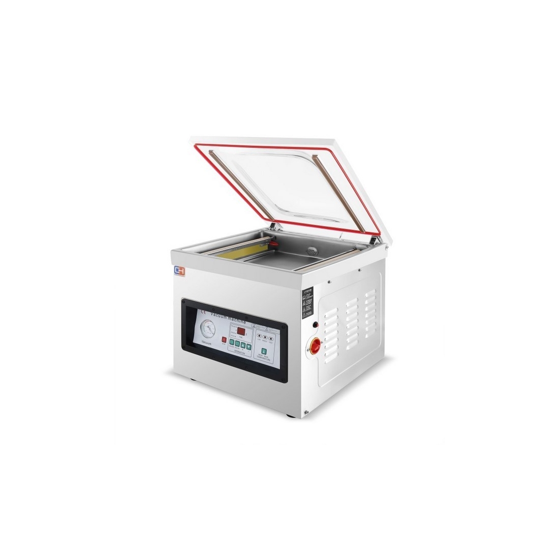 Envasadora al vacío de sobremesa, fabricadas en acero inoxidable de alta calidad, con cúpula de metacrilato transparente de alta resistencia que permite la visualización del proceso. Regulación del tiempo de sellado y de vacío. Certificado CE.