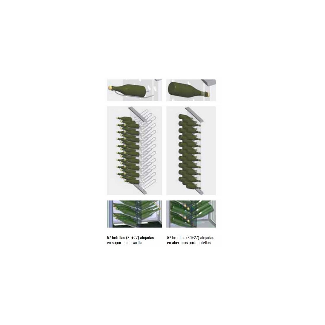 - 57 soportes de varilla para colocar otras 57 botellas en el sentido inverso.
