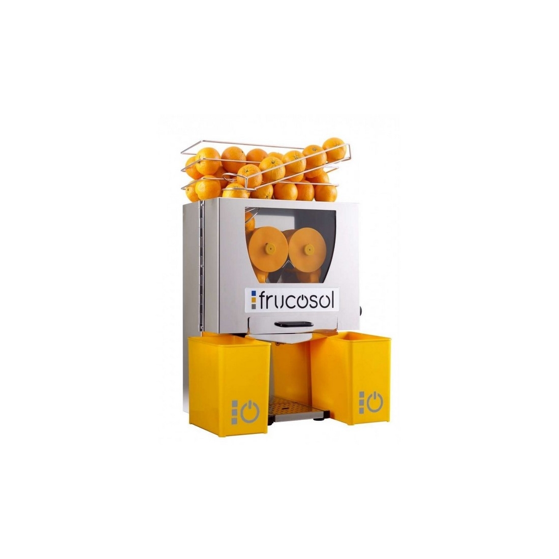 - FRUCUSOL F50 es una máquina exprimidora de naranjas automática de alimentación manual. Su atractivo sistema de exprimido a la vista del consumidor la convierten en un reclamo dentro de su establecimiento.