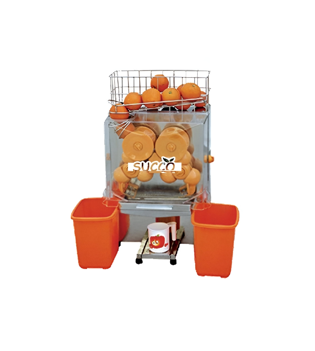 Exprimidor de Naranjas Automático SUCCO de Eutron, con una producción de 20 naranjas por minutos de hasta 80mm de diámetro.