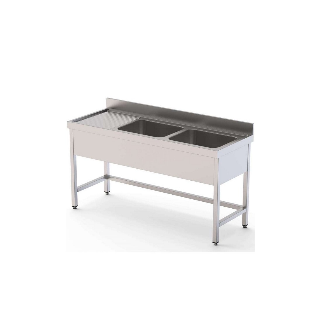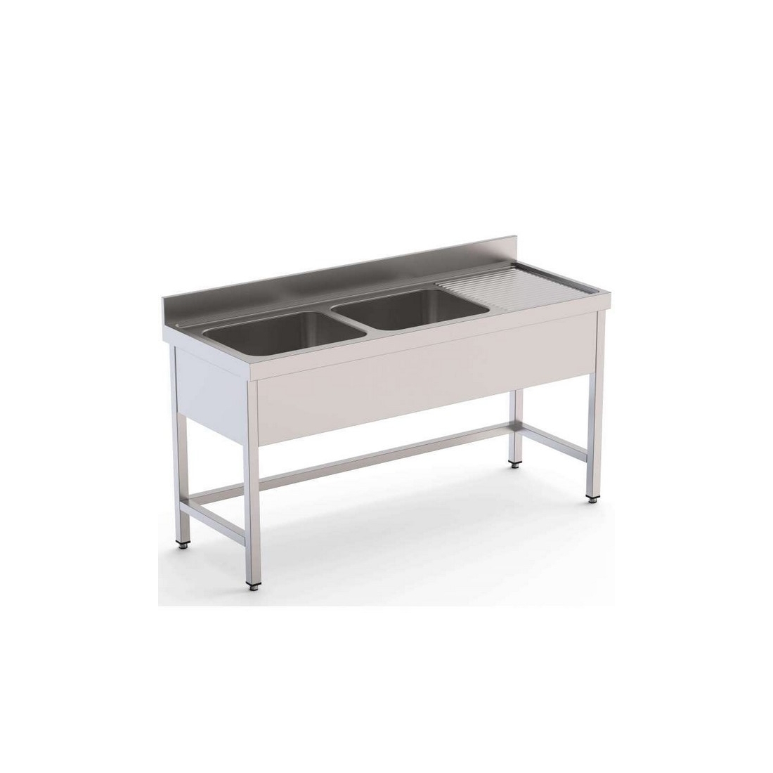 Fregadero industrial 140cm fondo 60 de Clima Hostelería, cuenta con escurridor, peto posterior trasero y tubos de las patas cuadrados, construido en acero inoxidable de alta calidad AISI-304. También realizamos modelos a medida, consúltanos.
