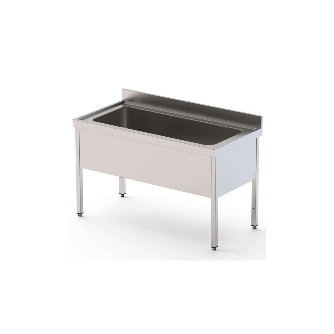 Fregadero industrial gran capacidad 1200 mm fondo 70 de Clima Hostelería, equipado con una gran cuba sin escurridor, peto posterior trasero, con tubos de las patas cuadrados. Construido en acero inoxidable de alta calidad AISI-304. También realizamos modelos a medida, consúltanos.