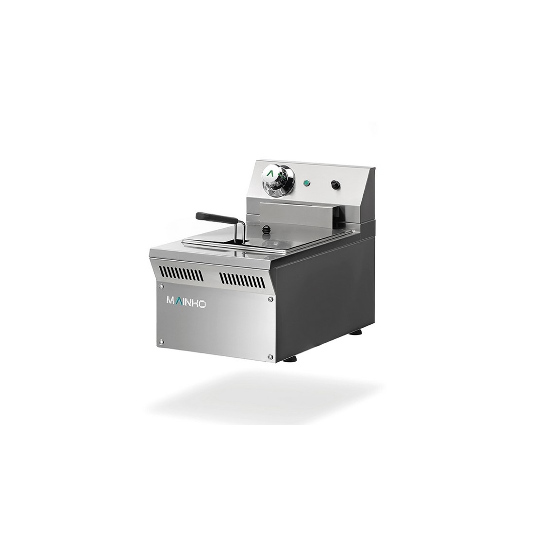 Freidora Profesional de 8 litros de la marca Mainho, con una resistencia blindada de acero inoxidable para un rendimiento máximo. El cabezal es extraible y cuenta con termostato de seguridad incorporado. Disponible en dos senos.
