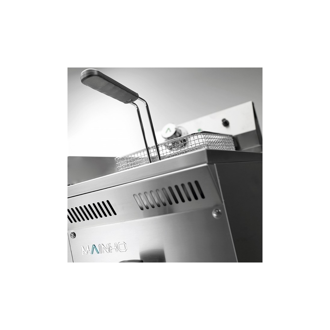 Freidora Profesional doble de 8 litros de la marca Mainho, con una resistencia blindada de acero inoxidable para un rendimiento máximo. El cabezal es extraible y cuenta con termostato de seguridad incorporado. Disponible en un seno.