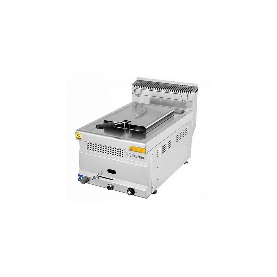 Freidora a Gas Simple 630 de Eutron, de sobremesa con dimensiones de 400 x 630 x 300 mm y una potencia de 7 Kw. Cuenta con una sola cuba de 8 litros de capacidad y es ideal para entornos comerciales.
