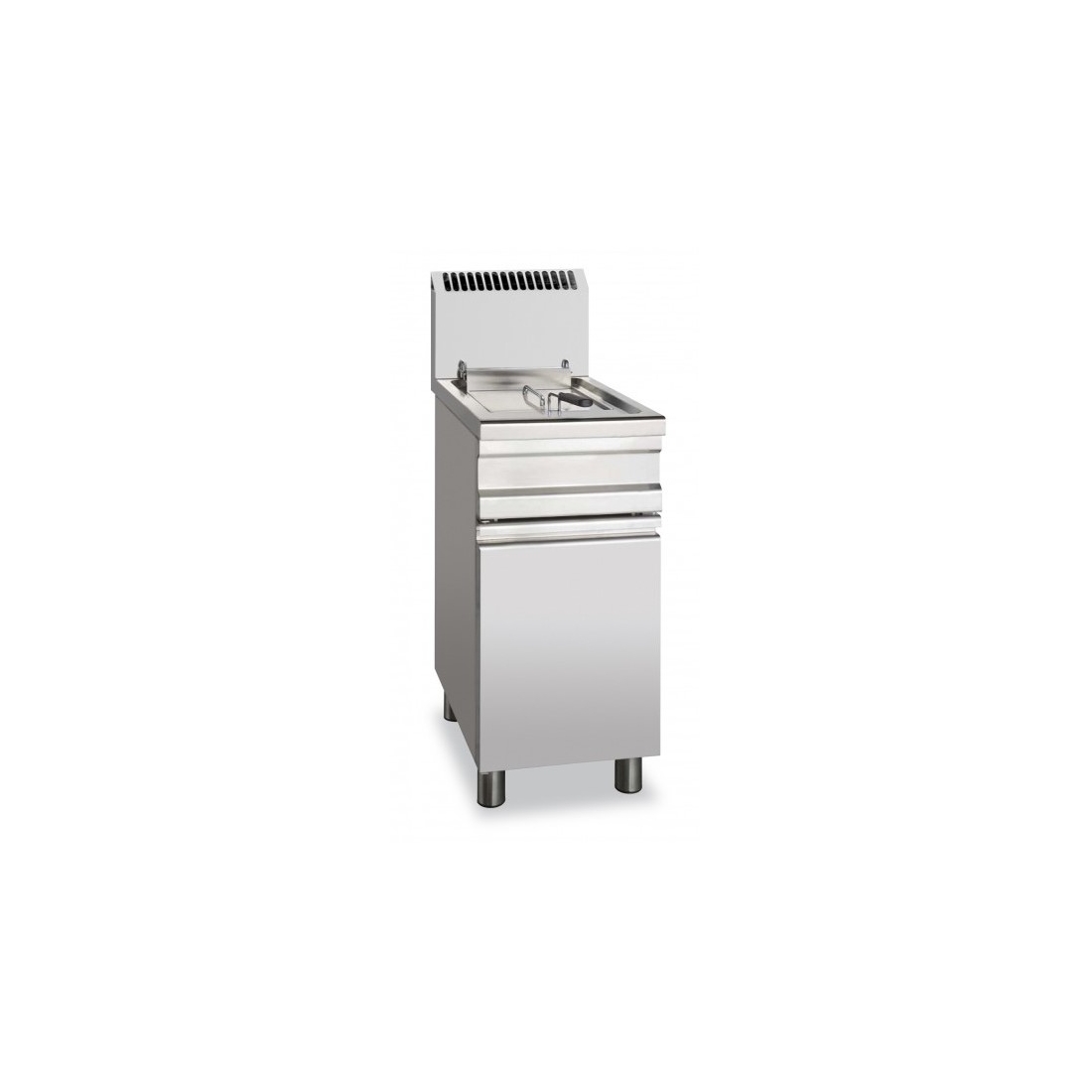 Freidora profesional de una cuba con mueble y capacidad de 18 litros. Cuenta con una potencia de 14 kW, dotada de llama piloto y termopar de seguridad. Fabricación Italiana