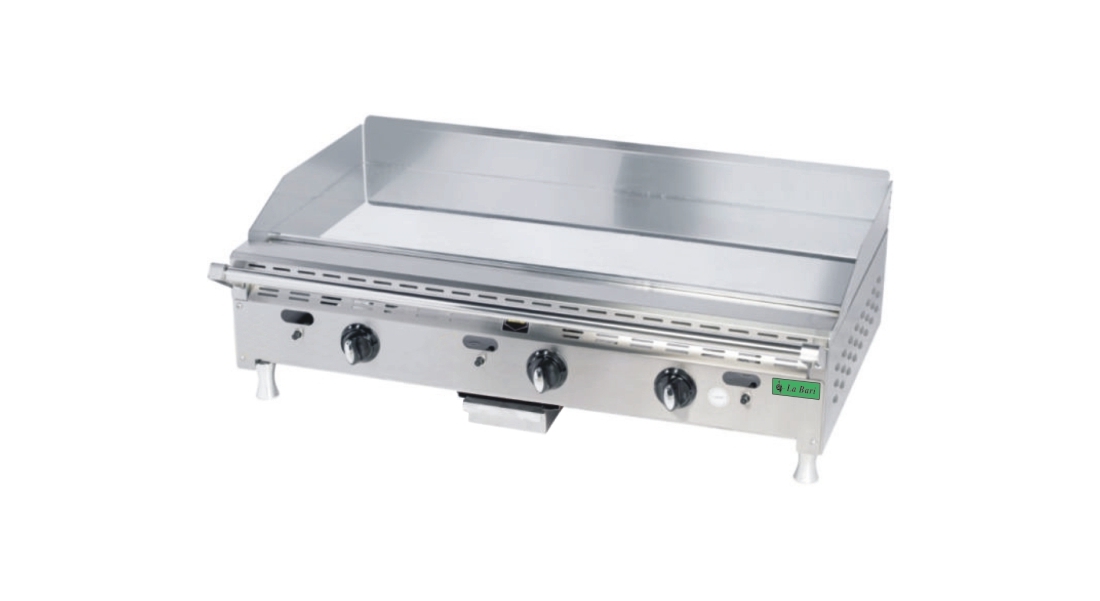 Este Fry top a Gas cuenta con una placa de cromo duro de un metro de ancho. Sus quemadores están dotados de termopar y llama piloto. Modelo muy potente con 21Kw repartidos entre sus tres quemadores.