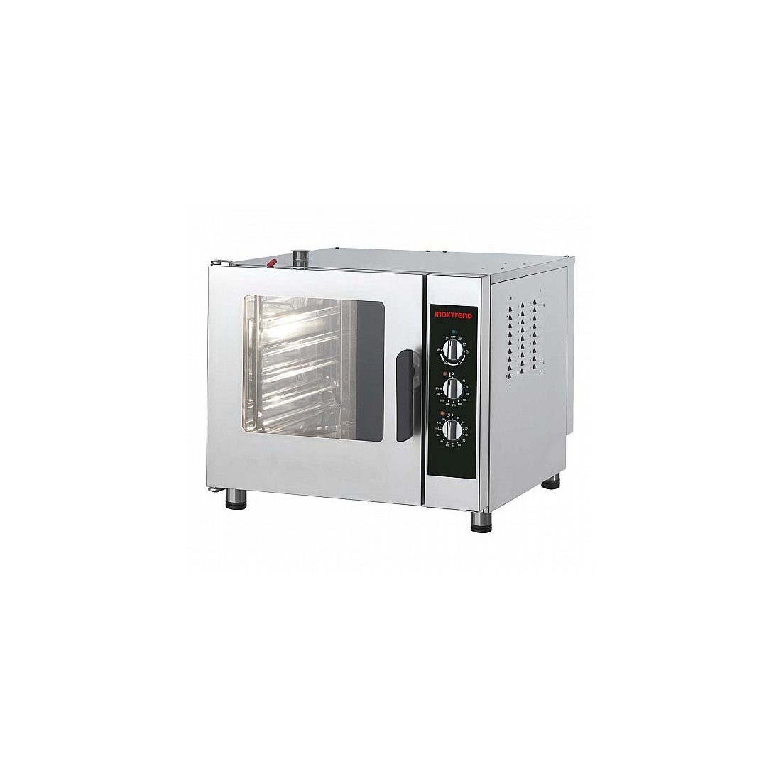 Horno Profesional de Gastronomía de 5 bandejas GN 1/1, eléctrico. Con una potencia de: 6Kw y conexión trifásica. Cuenta con un panel de mandos analógico intuitivo y fácil de usar. Modos de cocción: Vapor, convección y/o Mixto.