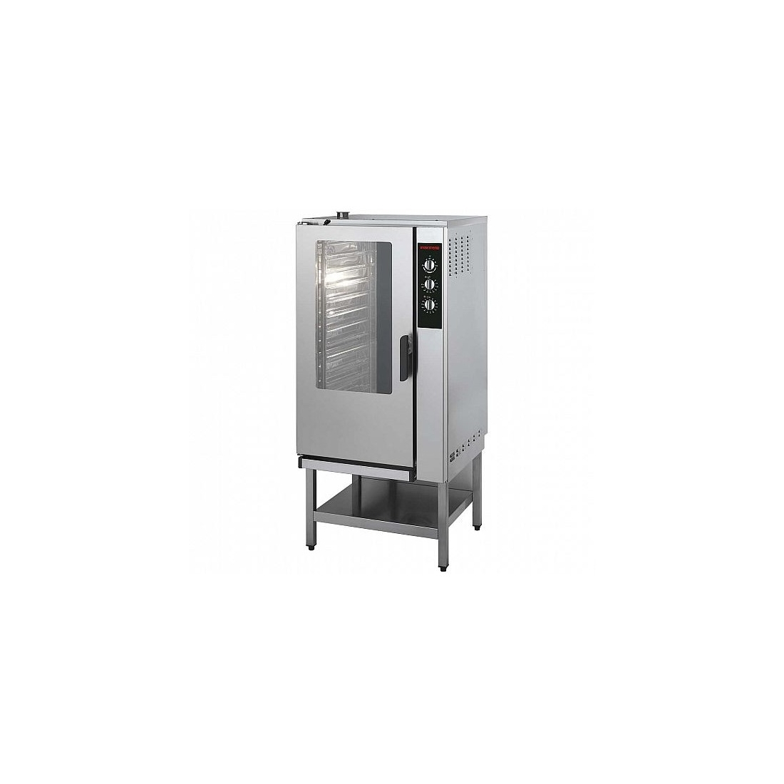 Horno Profesional de Gastronomía con 15 bandejas GN 1/1, eléctrico y potencia de 18Kw. Conexión trifásica para mayor eficiencia. Dispone de un panel de mandos analógico, intuitivo y fácil de utilizar. Ofrece versatilidad en los modos de cocción, incluyendo Vapor, convección y Mixto