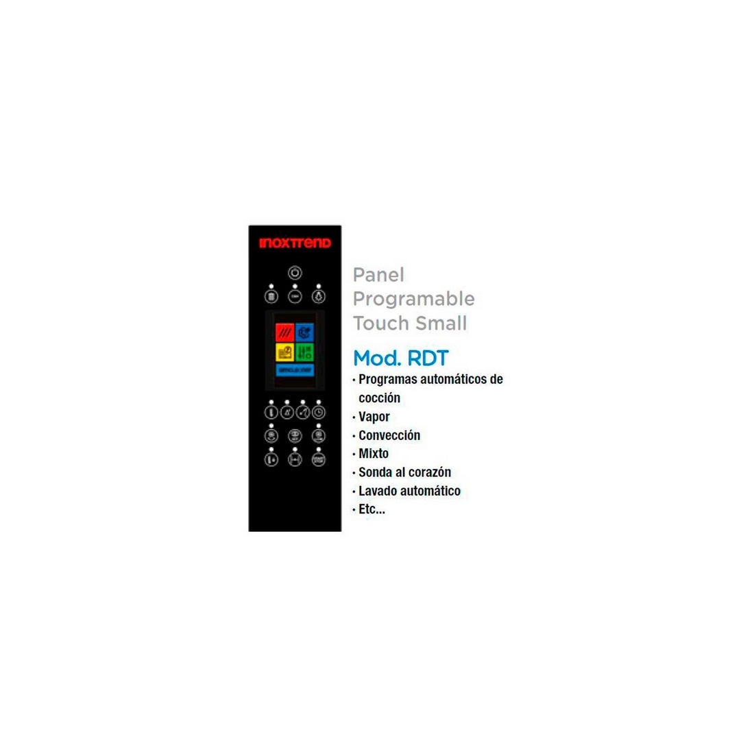 - Cuenta con Panel digital "Touch Small" desde el que podrás programar diferentes funciones como: Lavado automático (De serie), Precalentamiento automático, 2 velocidades de ventilación, sonda al corazón, autorreverse, función Cook and Hold ...