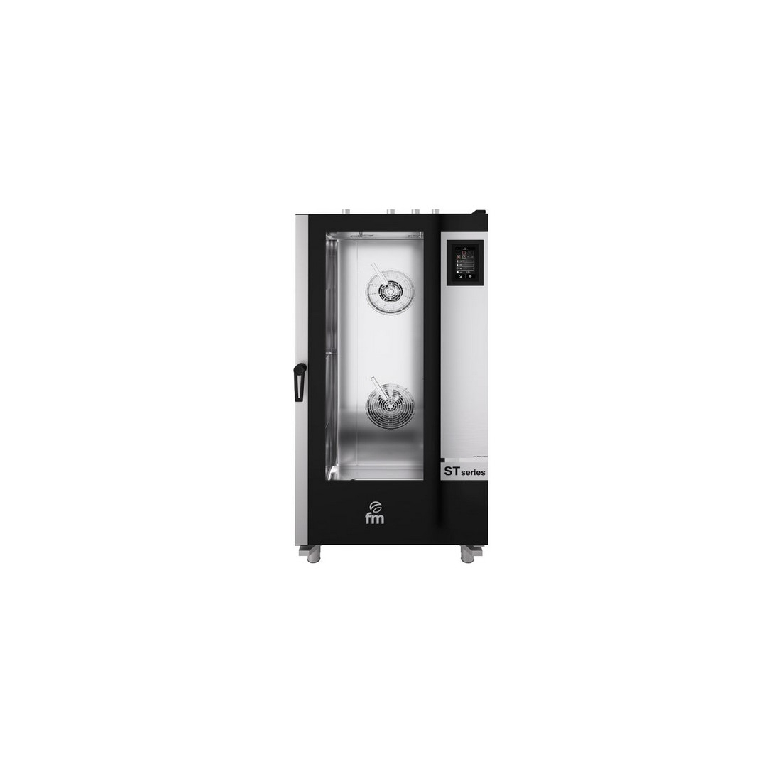 Horno Mixto STG 202 V7 T GAS de FM industrial, con control por pantalla táctil de 7" muy intuitiva y fácil de manejar. Cuenta con tres modalidades de pre calentamiento y 6 fases de cocción, además de un recetario con hasta 99 programas. Dispone de quemador Premix. Su conexión es monofásica. Gracias al sistema Multicook, podrá cocinar diferentes alimentos al mismo tiempo y con distintos modos de cocción. Con el sistema All time, todos los alimentos diferentes, estarán listos al mismo tiempo, en el horario hayas programado. (Ideal para servir diferentes platos en una mesa a la vez). Incluye lavado automático, sonda multipunto y carro extraíble. [su_youtube url="https://www.youtube.com/watch?v=nin1U92czXs" width="500"]