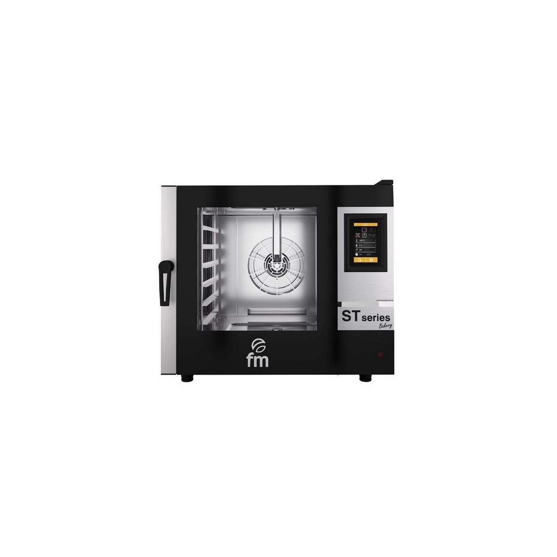 Horno a gas de la serie ST Bakery. Equipado con control mediante pantalla táctil de 7″. Cuenta con sistema de quemador Premix. Tiene una potencia de 14kw - 12040kcal/h. Alcanza una temperatura de 270ºC. Incluye 99 programas con 6 fases de cocción diferentes. Ideal para pastelería/panadería.