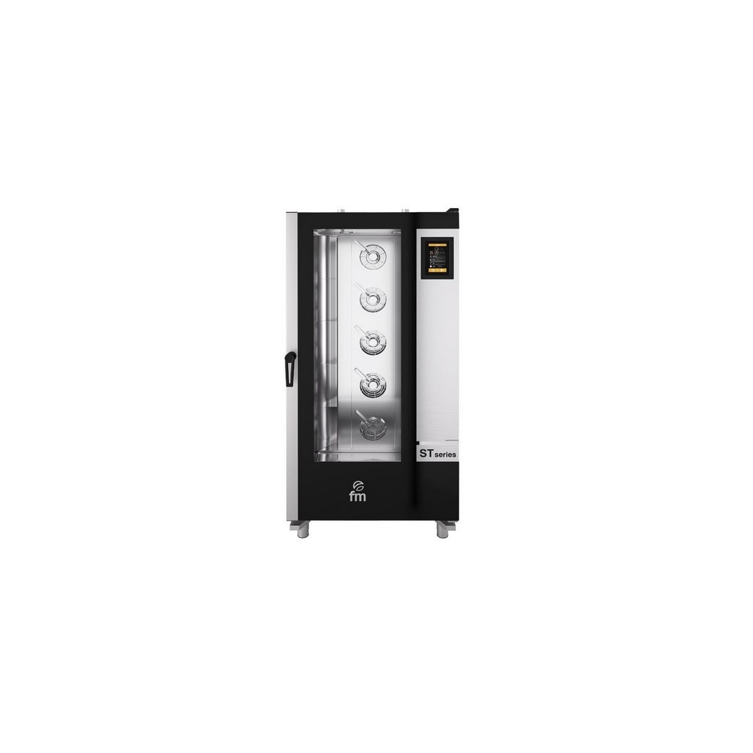 Horno eléctrico de la serie ST Bakery. Equipado con control mediante pantalla táctil de 7″. Cuenta con una potencia de 26.250W y conexión trifásica. Alcanza una temperatura de 270ºC. Incluye 99 programas con 6 fases de cocción diferentes. Ideal para pastelería/panadería. Incluye carro extraíble de serie.