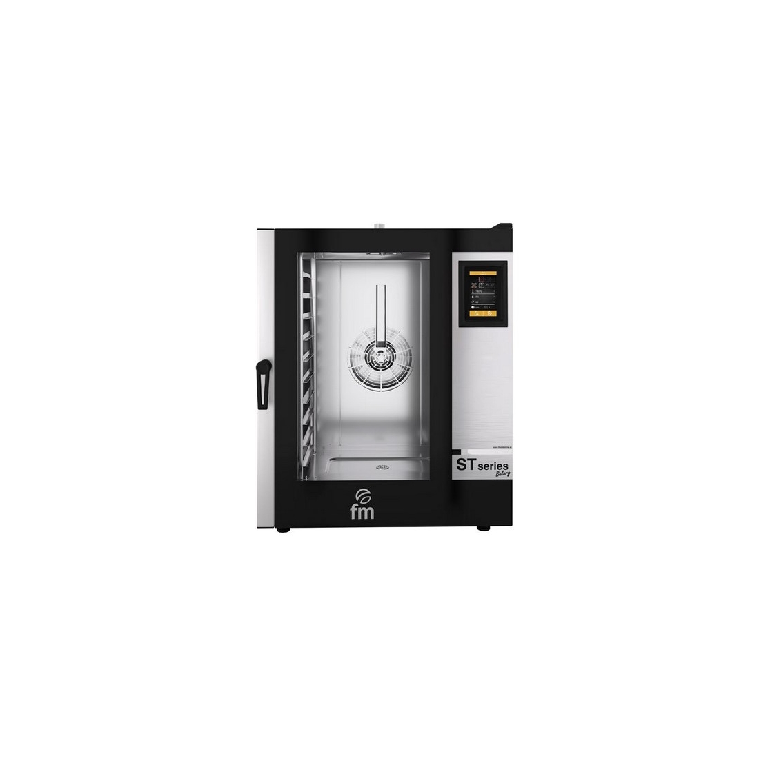 Horno a gas de la serie ST Bakery. Equipado con control mediante pantalla táctil de 7″. Cuenta con sistema de quemador Premix. Tiene una potencia de 28kw - 24080kcal/h. Alcanza una temperatura de 270ºC. Incluye 99 programas con 6 fases de cocción diferentes. Ideal para pastelería/panadería. Cuenta con una capacidad de 10 bandejas de 80 x 40 cm o 20 de 60 x 40 cm.
