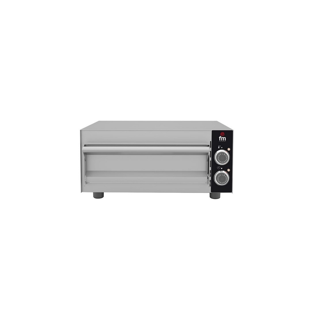 Horno de pizza eléctrico STZ133 de FM industrial cuenta con una capacidad de una pizza de 35cm de diámetro y conexión monofásica. Está dotado de piedra refractaría en su interior y es ideal para pequeñas cocinas de pub, cafeterías o restaurantes.