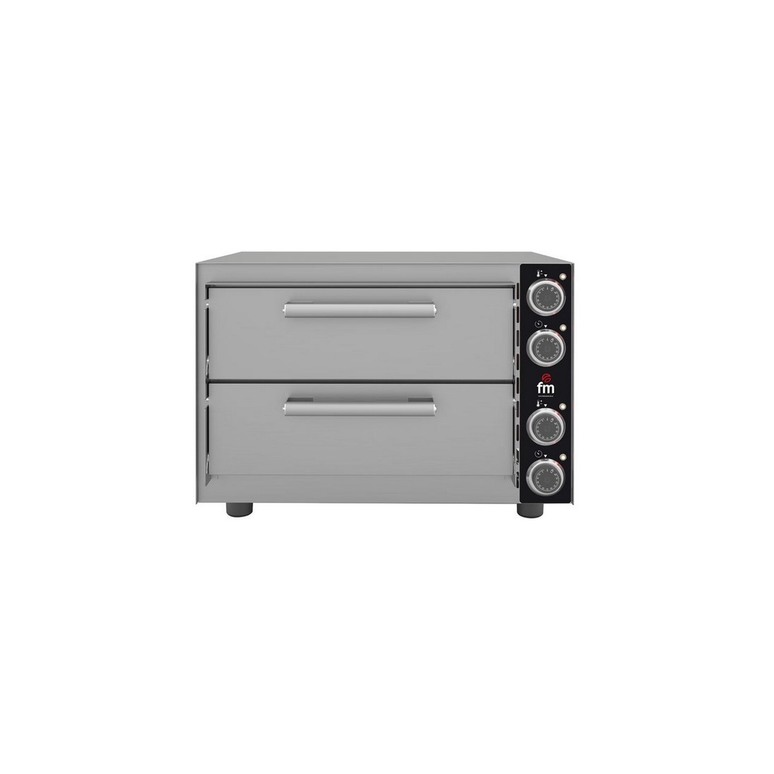 Horno de pizza eléctrico STZ233 de FM industrial, cuenta con una capacidad de dos pizzas de 35cm de diámetro y conexión monofásica. Está dotado de piedra refractaría en su interior y es ideal para pequeñas cocinas de pub, cafeterías o restaurantes. La capacidad de este horno de pizzas se divide en dos cámaras, una pizza de 35cm por cámara. Esto hace que sea un horno compacto con unas dimensiones externas reducidas.