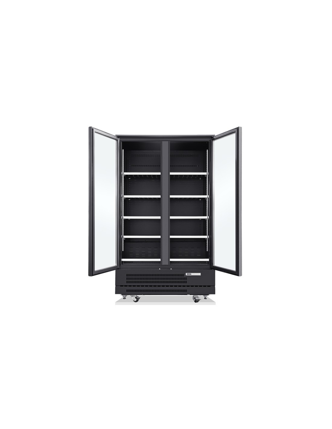 - Puertas con cierre automático y anclaje fijo para reposición fácil del producto, ideal para supermercados y tiendas de conveniencia.