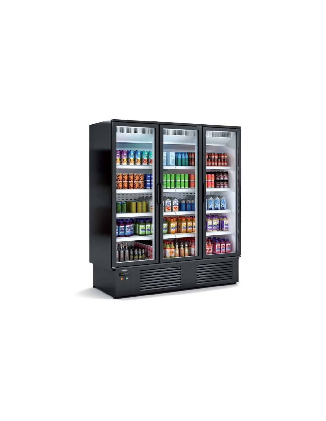 Vitrina mural vertical de 3 puertas de cristal con volumen neto de 1253 litros y 8 estantes ajustables (área 4,29 m²), pensada para retail con alta rotación. Refrigeración ventilada con control electrónico, iluminación LED en montantes y aislamiento de 70 mm. Medidas: 1925 x 800 x 2156 mm.