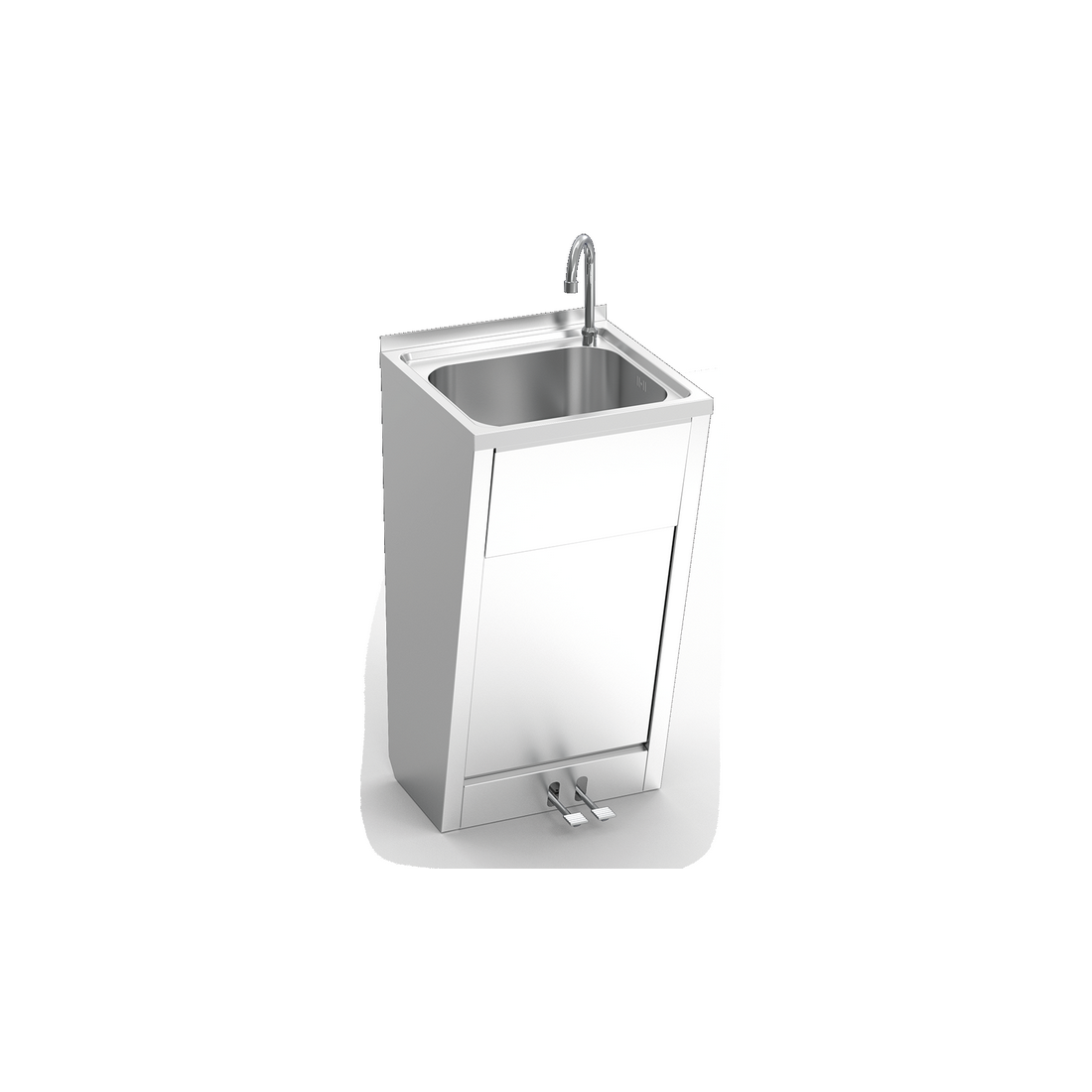 Lavamanos Registrable de Doble Pedal Fricosmos, está construido completamente en acero inoxidable, equipado con grifo giratorio y doble pedal para agua fría y caliente.