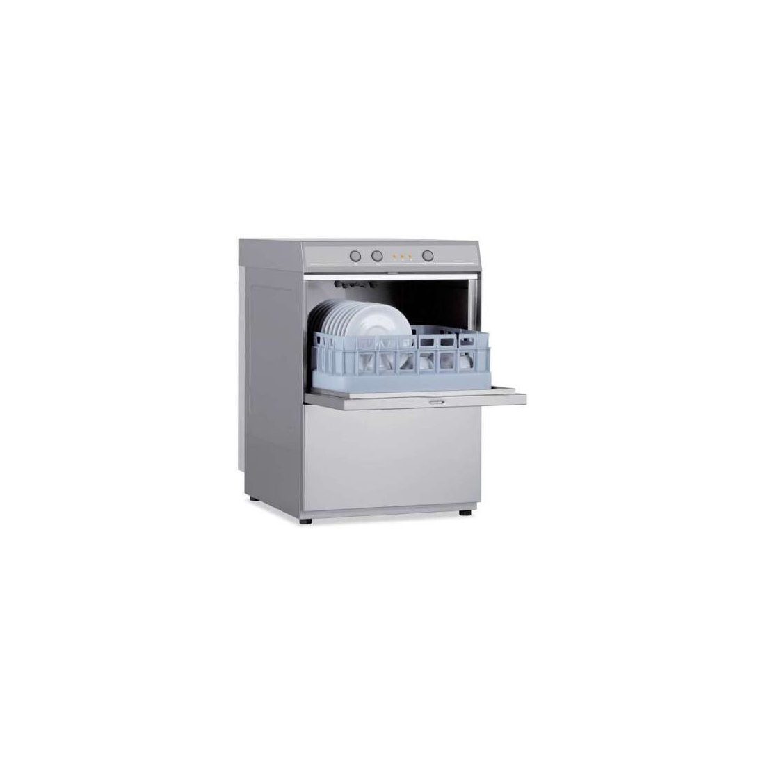 Lavavasos industrial, con cesta de 35x35cm. Equipado con panel de mandos analógico. Altura vasos 25cm. Apertura puerta 26cm. Incluye 2 cestos de vasos y 1 cesto de cubiertos. Medidas 40.1 x 49 x 59.5 cm. Conexión 230 V.
