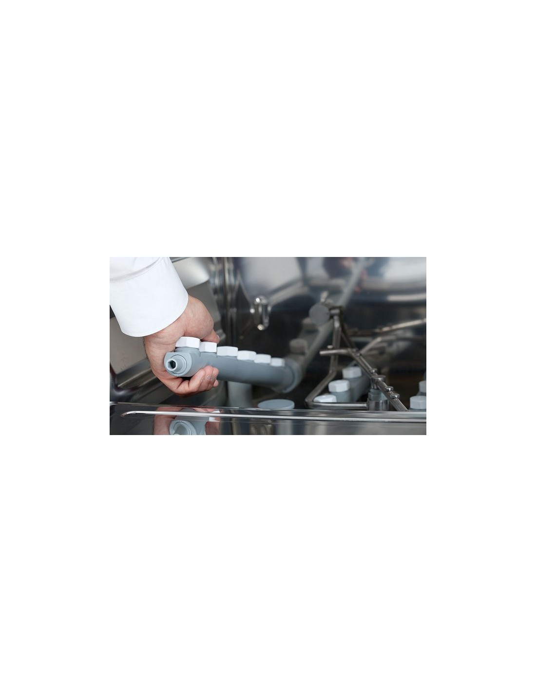 - Sistema de lavado giratorio en acero inoxidable.