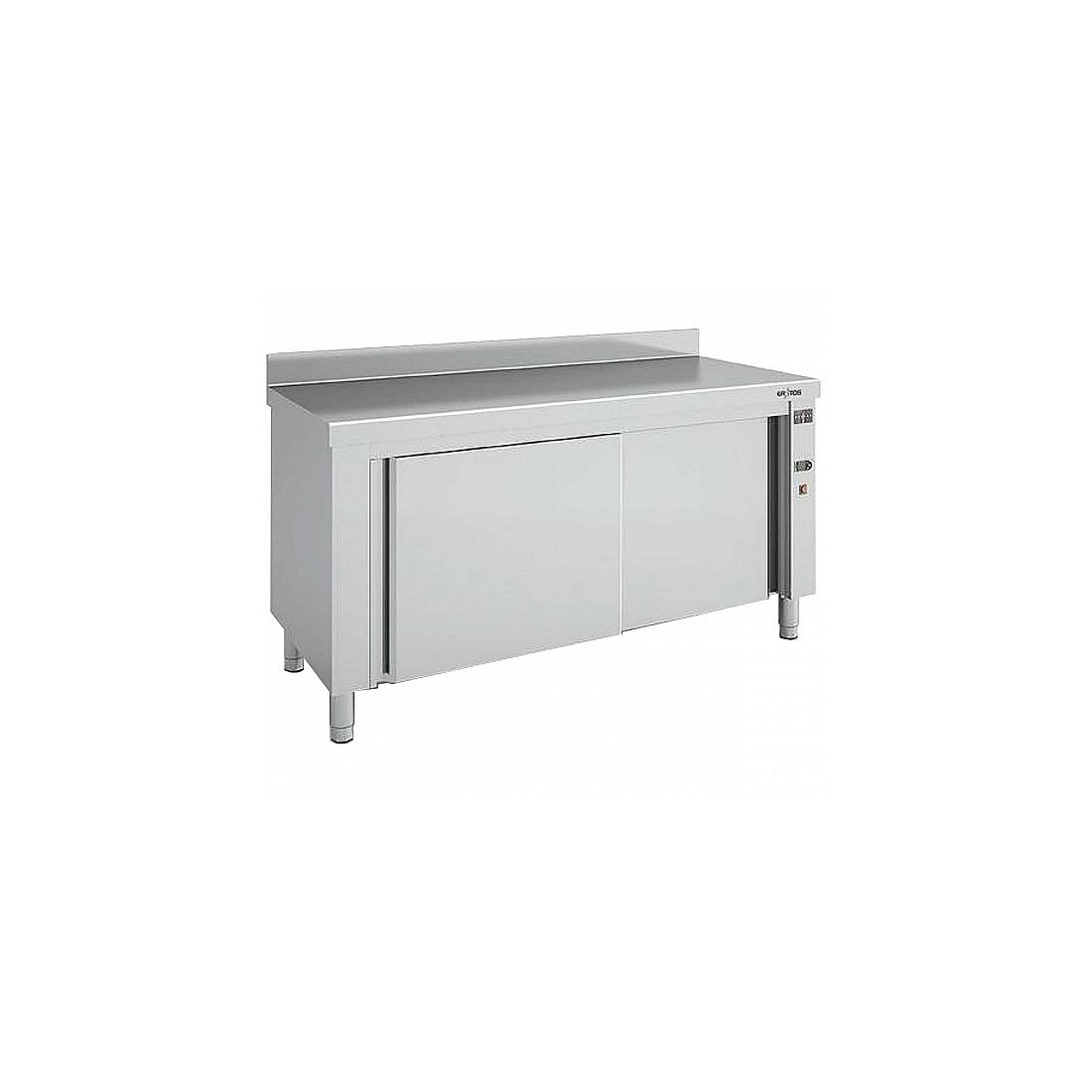 Mesa de calor ideal para mantener los alimentos en tu temperatura adecuada. Modelo de 180cm con dos puertas correderas. Fondo 600mm. Protección térmica de seguridad mediante clixon. Modelo Mural.