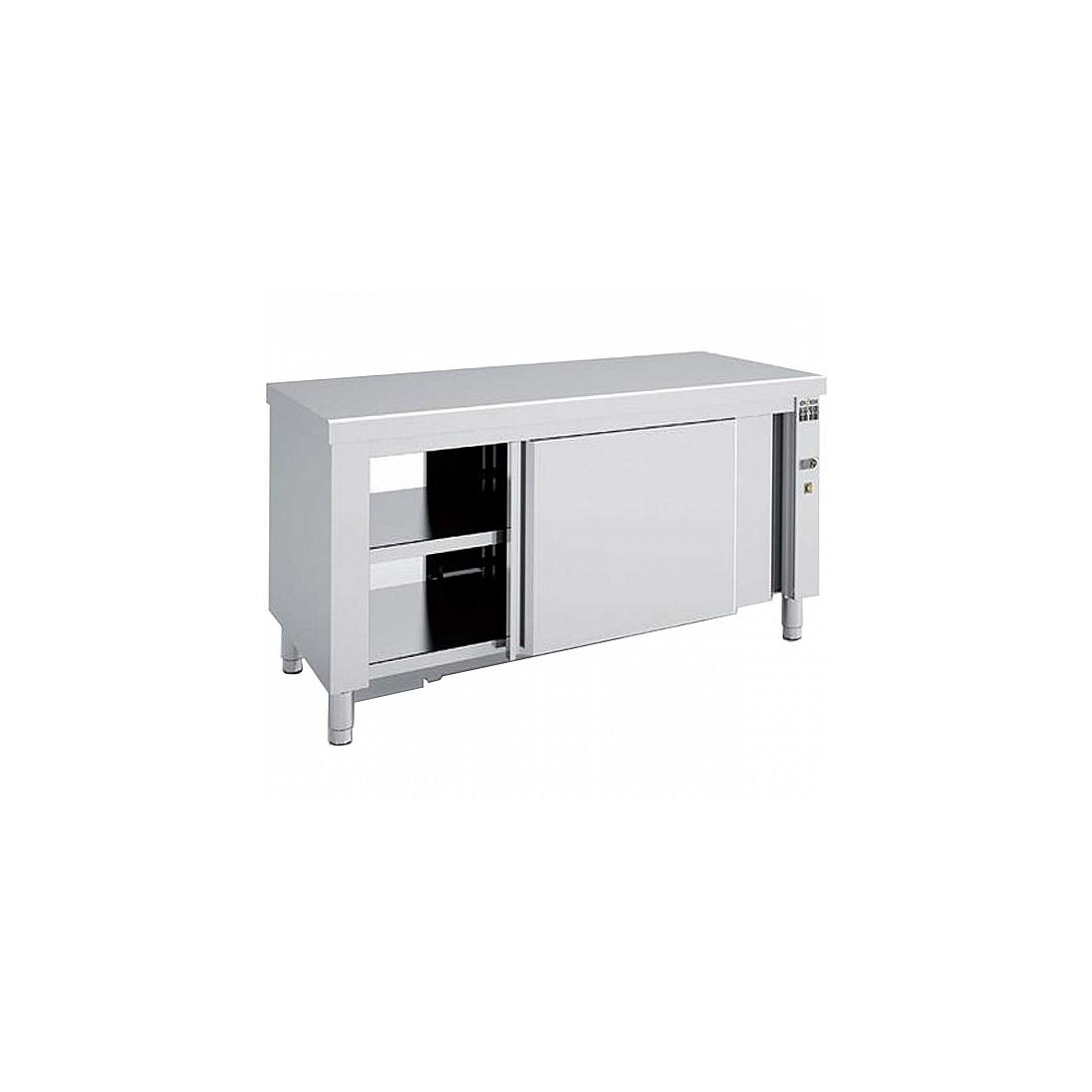 Mesa de calor ideal para mantener los alimentos en tu temperatura adecuada. Modelo de 160cm con dos puertas correderas. Fondo 700mm. Protección térmica de seguridad mediante clixon. Modelo Pasante.