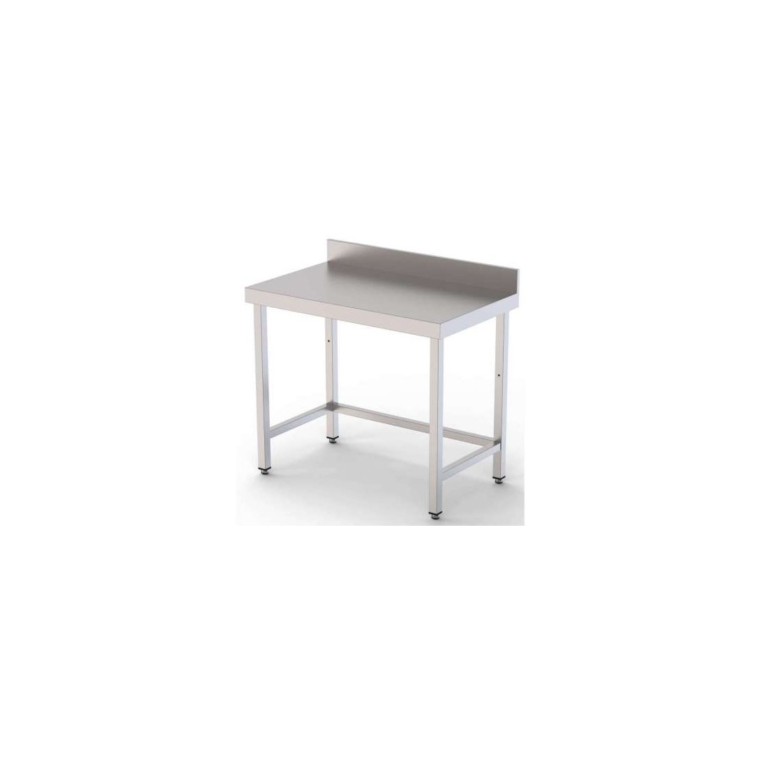 Mesa de trabajo mural construida en acero inoxidable de alta calidad AISI304, con patas en tubos de 40x40mm, regulables en altura. Ideal para todo tipo de negocio que requiera trabajar sobre una superficie limpia y duradera.
