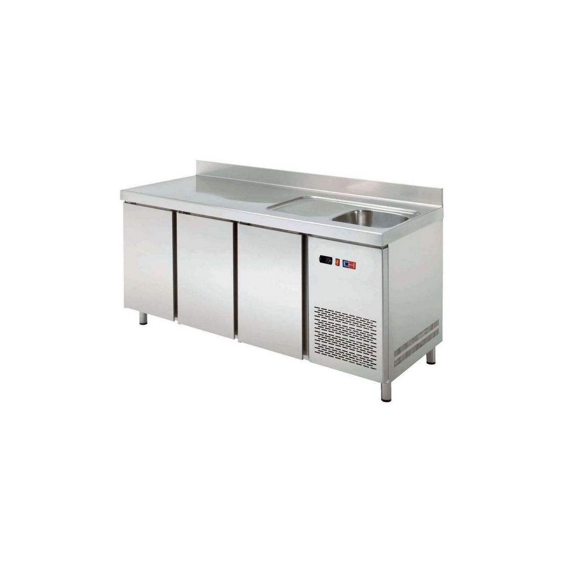 - Mesa Refrigerada con Fregadero MRCH-200F dotado con tres puertas de almacenaje.