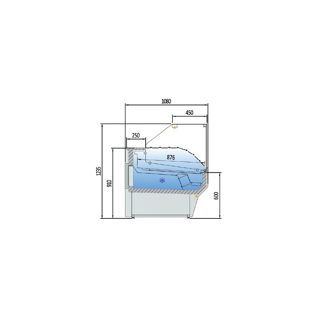 - Zona trasera del mostrador de 250 mm.