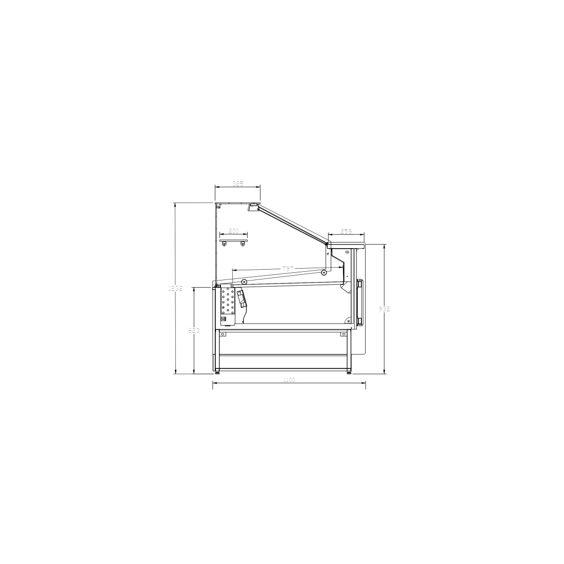 - Estructura superior en vidrio templado panorámico recto con frontal abatible y laterales preparados para la instalación de estante intermedio (opcional).