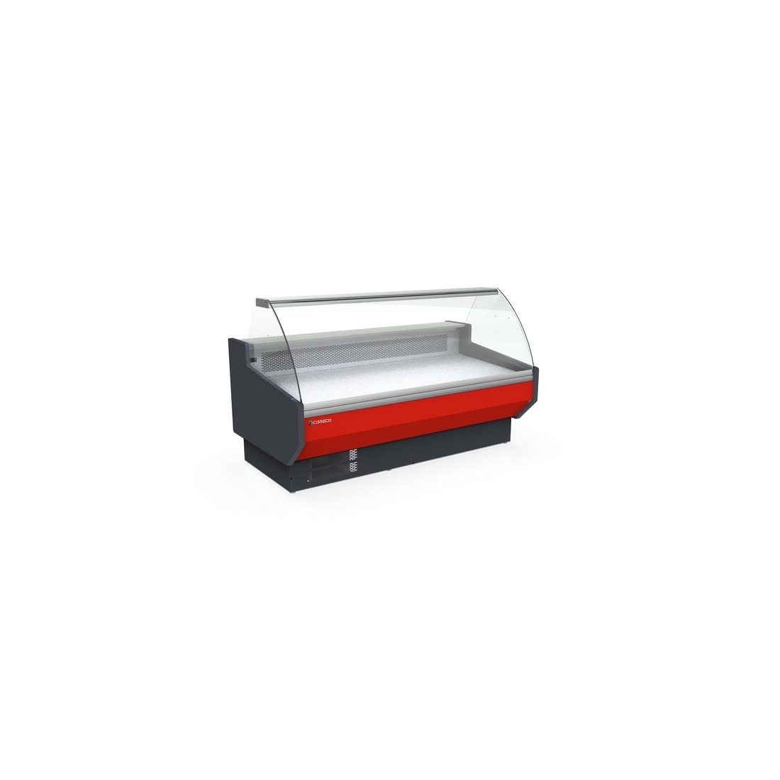 Vitrina Carnicera 3 metros CVED-10-30-C de Coreco, esta vitrina cuenta con un amplio plano de exposición de 850 mm. Tiene 4 puertas trasera para la reserva con una capacidad 896 litros. Incluye un eficiente sistema de enfriamiento y bajo consumo de energía. Cuenta con un diseño moderno y elegante. Además, puedes elegir la decoración frontal en cualquiera de sus 8 colores disponibles.