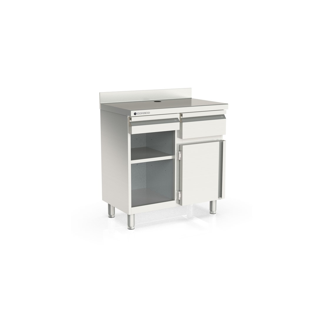 El mueble Cafetero 100cm SMC-100 de Coreco, una pieza construida con precisión en acero inoxidable AISI-304 18/10, que garantiza durabilidad y elegancia en cada detalle. Su respaldo está construido en acero plastificado. Se puede fabricar en diferentes dimensiones.